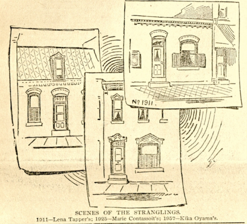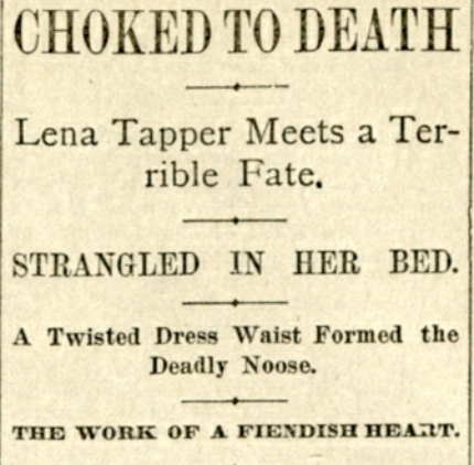 On September 3, local lady of the night Lena Tapper was found dead in her bedroorm at 1911 Market Street, strangled the night before, with a piece of her clothing tied around her throat to prevent any chance of resuscitation.