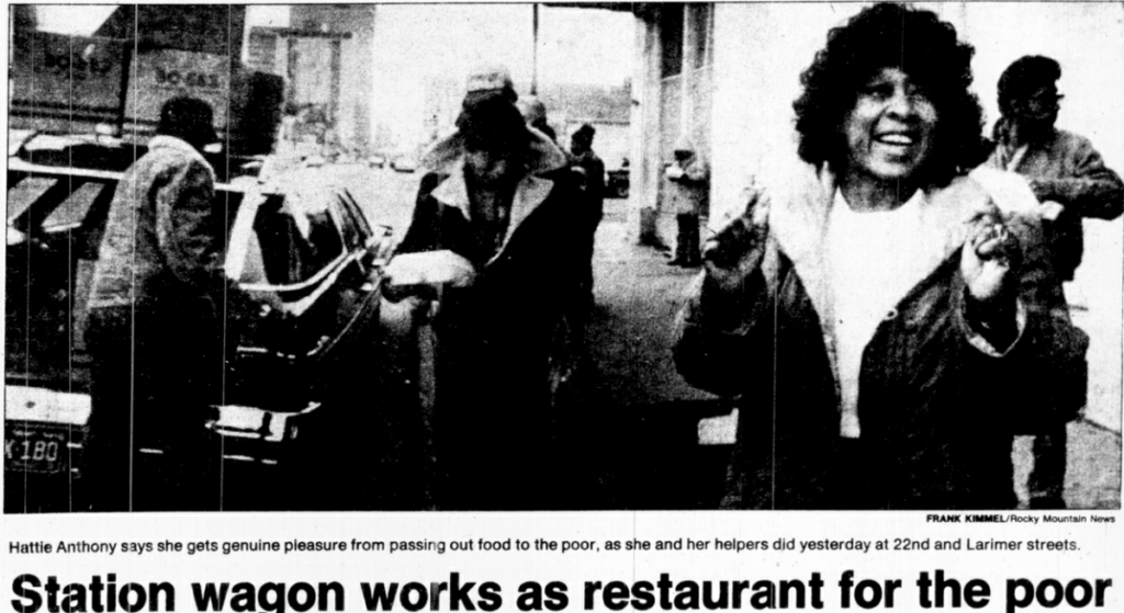 Back in the 1980s, Hattie Anthony would venture down to Larimer every week for years. In 1983, she said she usually cooked enough food to feed 150.