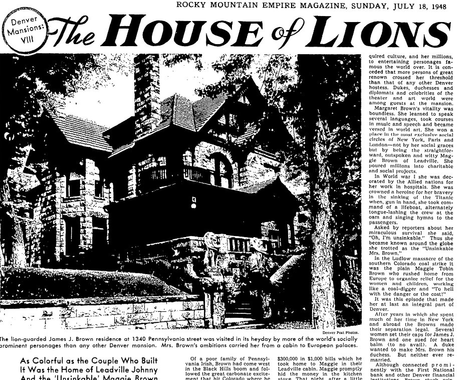 The Browns relocated to Denver and purchased a Queen Anne-style house at 1340 Pennsylvania, designed by William Lang, from a family that needed money after the 1893 silver crash.