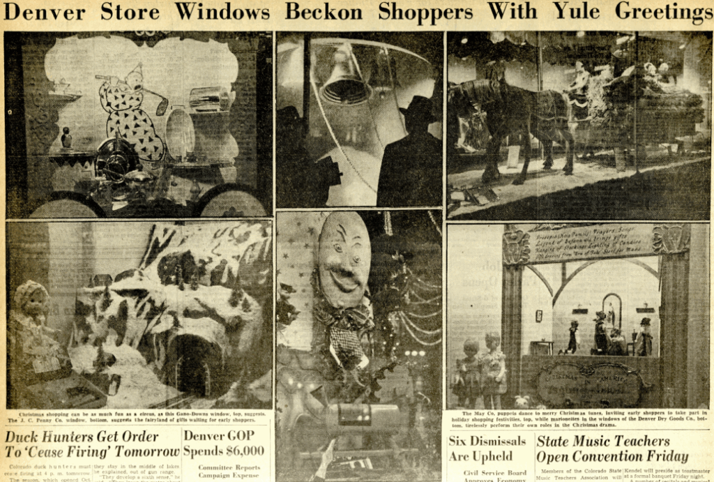 Before the parades, downtown Denver used to attract prospective shoppers with elaborate decorations as they walked from one side of 16th Street to the other end. When the May Co. ruled the retail scene, it opened an ice rink near its main store on 16th and Tremont, where 16th Street between Tremont and Court Place is now the Sheraton’s current residence.